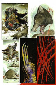 Otra entrada más sobre el viejo viejo Carcayú, pero esta a modo de curiosidad. Una especie de germen del ya comentado Wolverine: The end, mezclado con Wolverine: Old Man (aún publicandose a día de hoy e infinitamente superior al anterior). Como ya dije en el otro post, este personaje está destinado a ser uno de los supervivientes, si no el único, del universo Marvel. Consta de doce páginas que constituyen un prólogo, exquisitamente dibujado y coloreado por el mítico Enrique Breccia, para un tomo que nunca llegó a buen puerto. El guión corre de la mano de Joseph Harris (Bishop: the last X-Man -si yo fuese Harris, me plantearía muchas cosas-, Slingers).